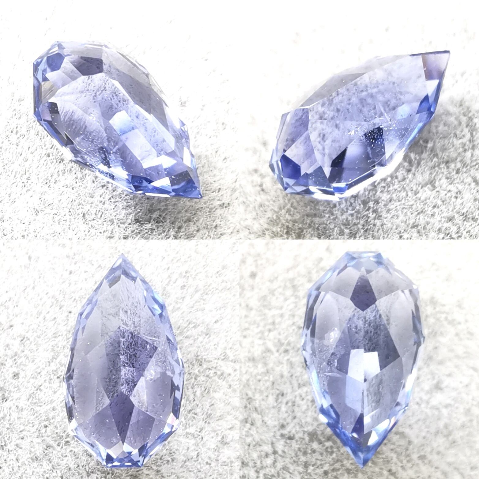 ごく淡いタンザナイトの様なスッキリとしたペールパープリッシュブルー、パステルブルーといった瑞々しく綺麗なサファイア。