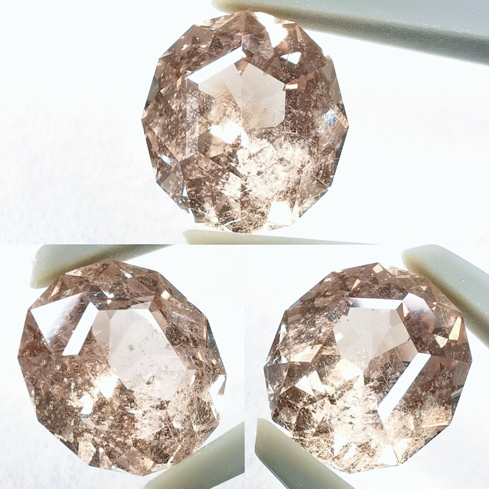 1.6カラットアップとボリュームがあり、素晴らしいカスタムカットが施されています。撮影したアングルの影響で、パビリオン側が平べったく写っていたり、ラインずれて見えているものありますが。写真のようなカット不正はみられません。