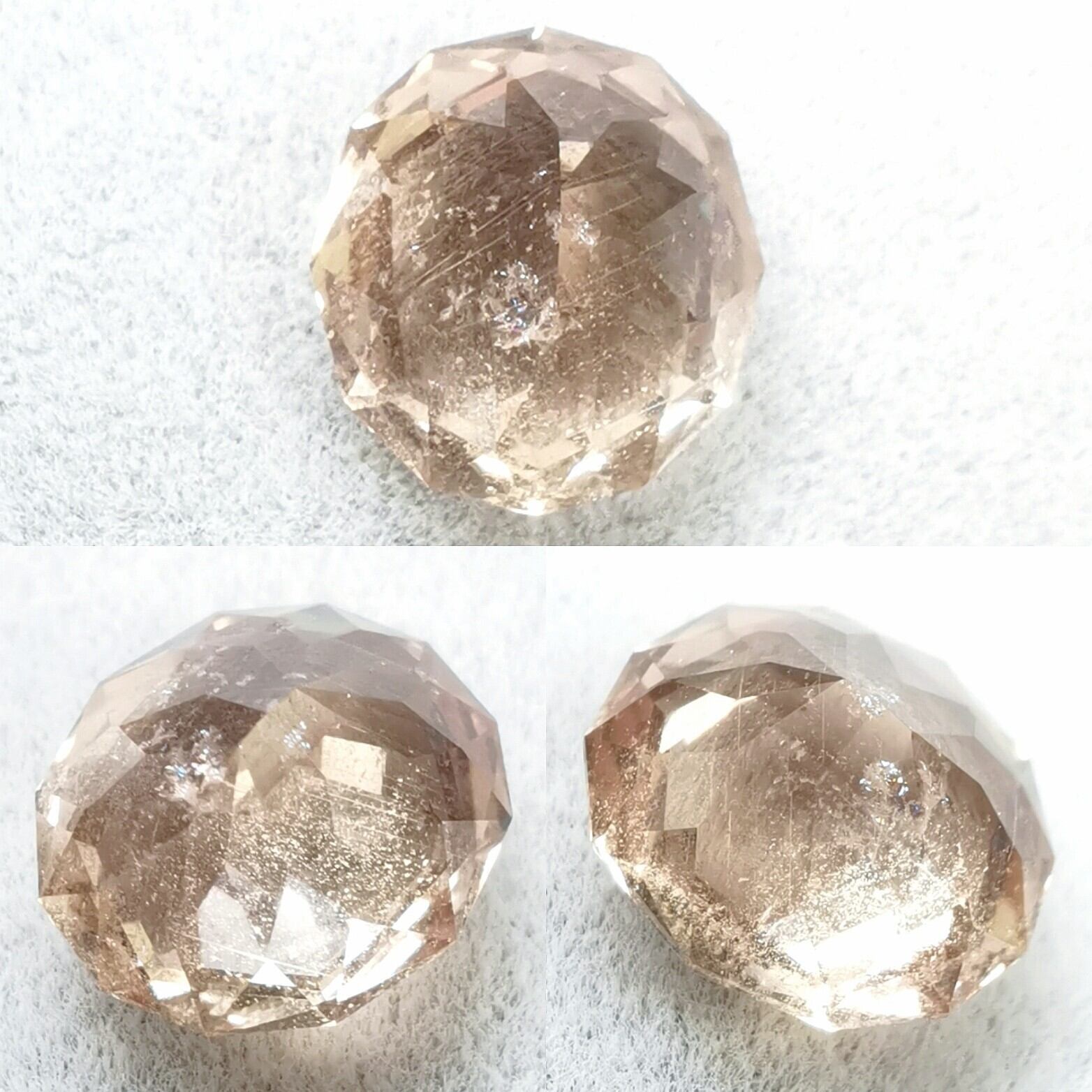 内包物が少し目視できクリアではありませんが。それらの影響でナチュラルらしく、優しい雰囲気をつくりだしています。また、光源の種類や加減により橙がかって見えたり、裏に小さな々さな虹がちらり垣間見えたりと大きく楽しい神秘的な御石です。