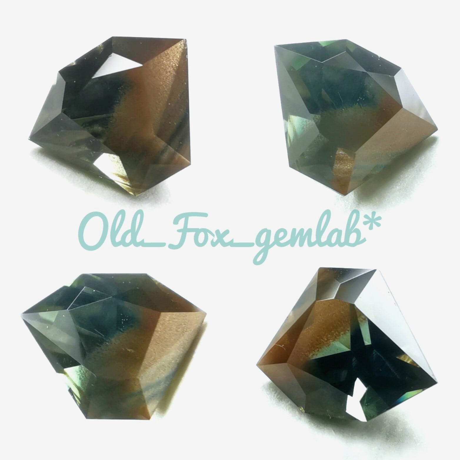 ちいさく低めの彩度お色味の為、少し分かりにくいですが。レイクブルーグリーン、アクアグラスグリーンといった緑水色と。サテンのような光沢をみせるブロンズ、バーンブラウンの金属光沢こげ茶色とのツートンカラーサファイア。