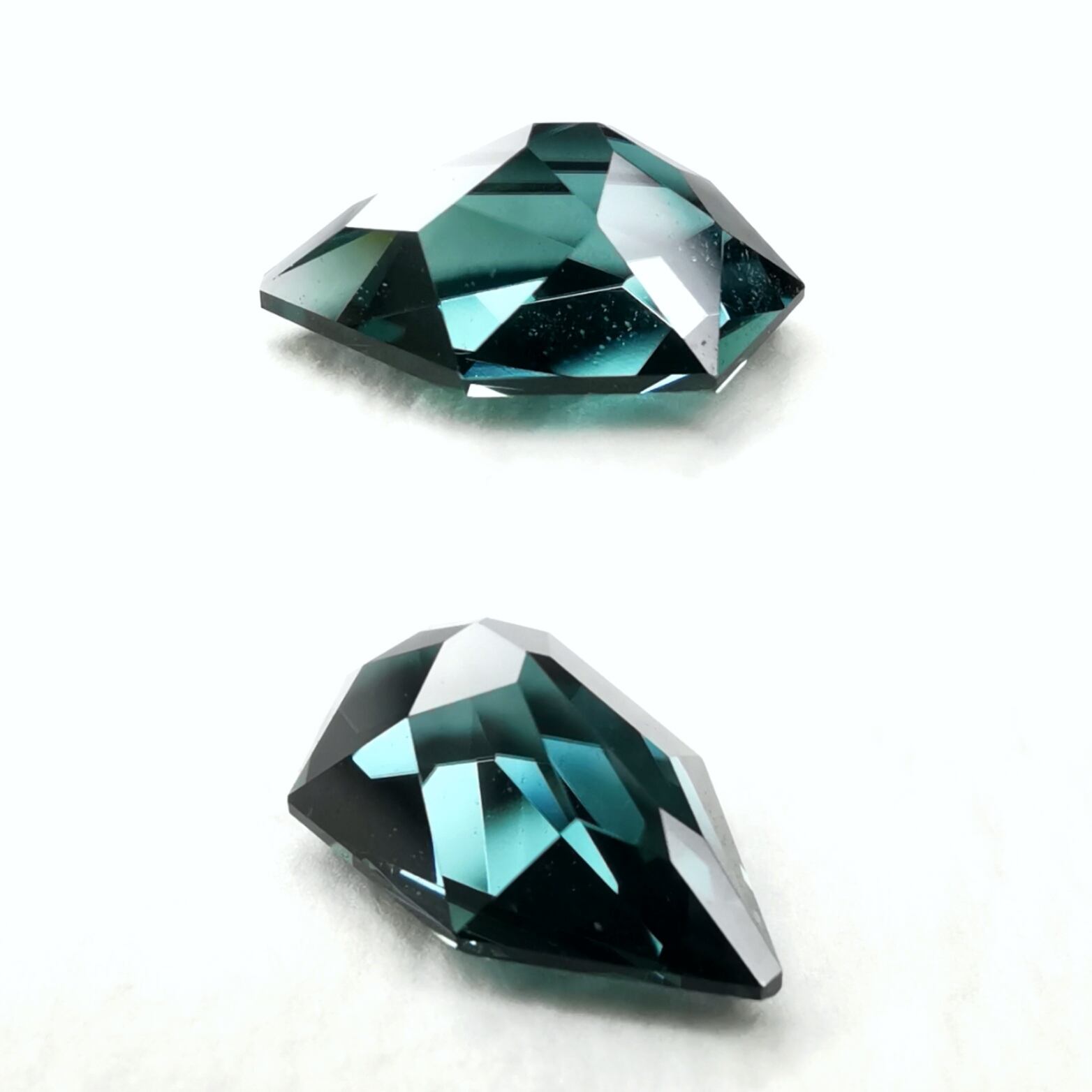 此方は、数年前にブラジルミナスジェライス産のインディコライトとして買い付けたクリアに近い貴重なブルーグリーン系トルマリンラフを。惜しまず研磨依頼しポリゴナルカイトの変形カット施したもの。