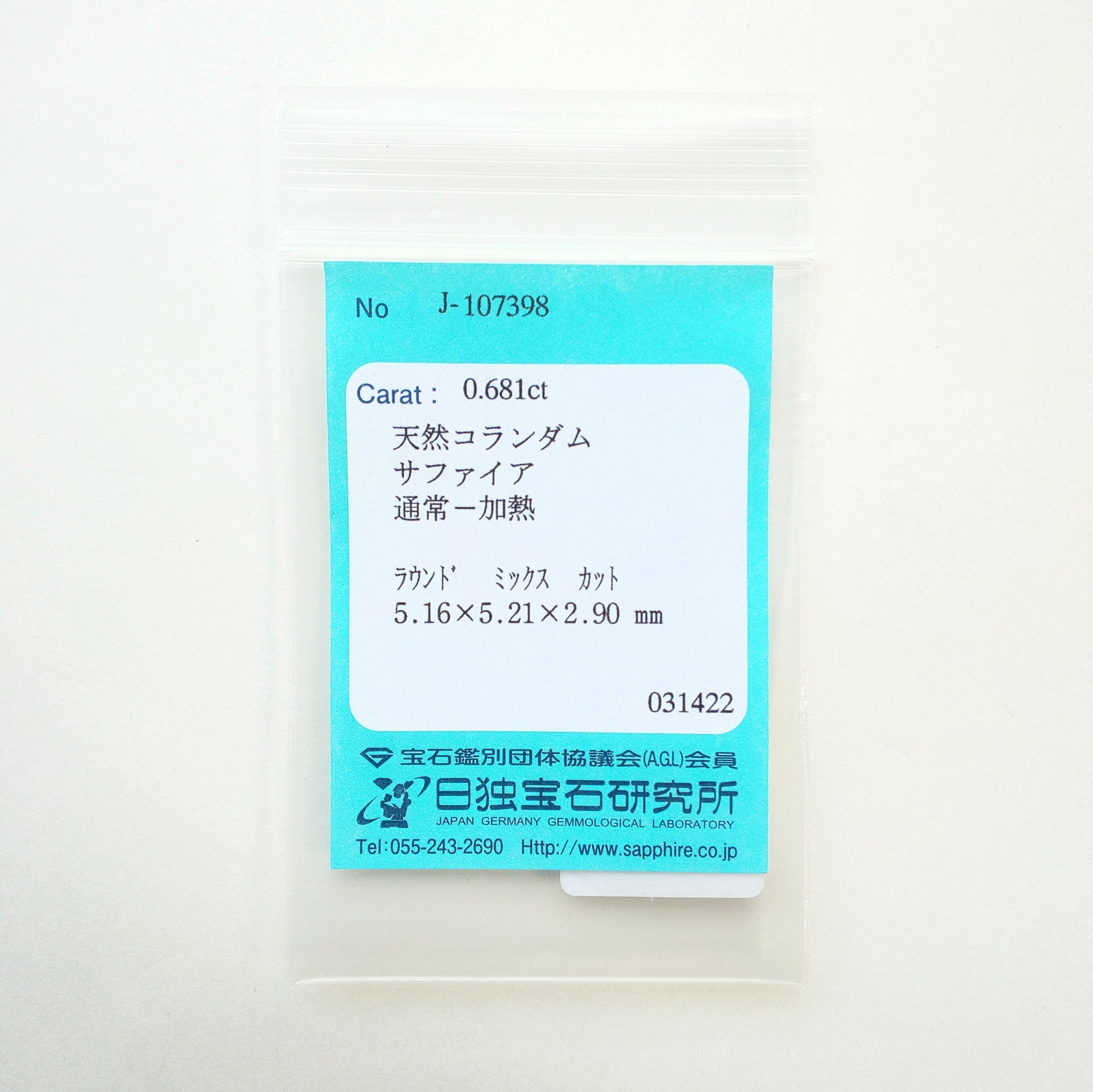 天然サファイア 0.68ct / 22jan04c