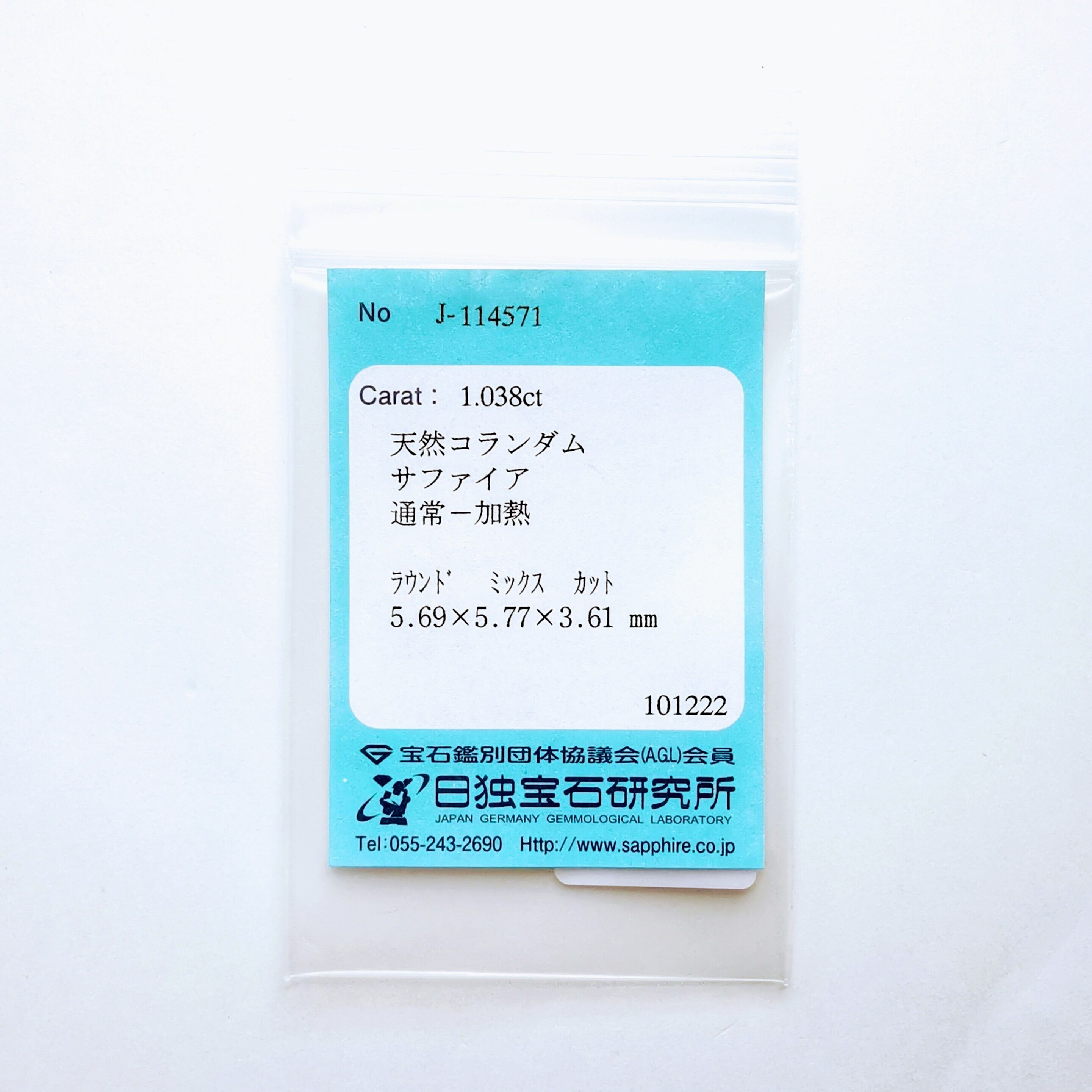 天然サファイア(日独ソ付)1.04ct / 22mar16a