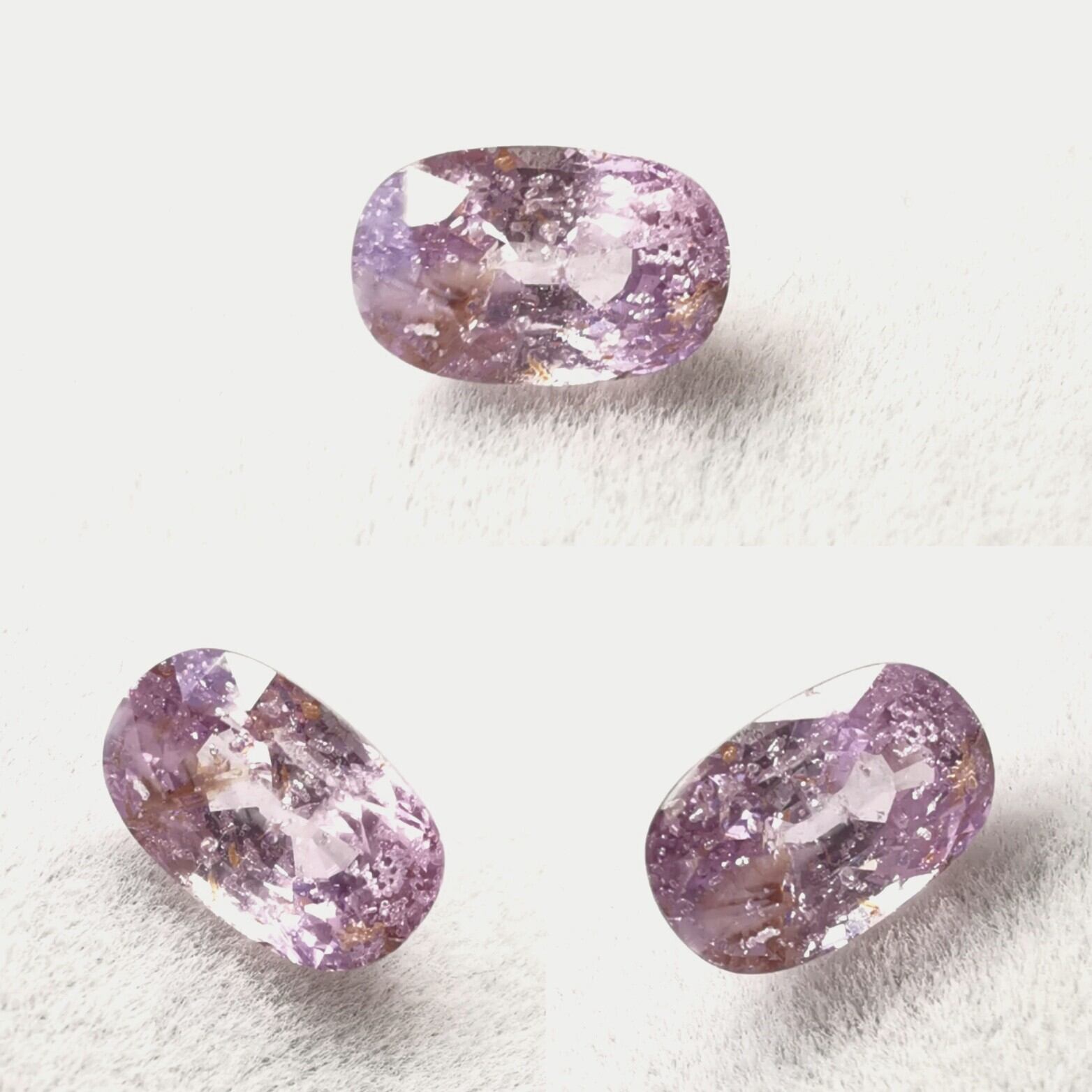 クラリティは、見ての通り。極小さなミネラルインクルージョンが散見し、薄く短いフラクチャー割れに染み入に薄茶のアイロンステイン、靄っとしたミルキーな内包物など目視できます。