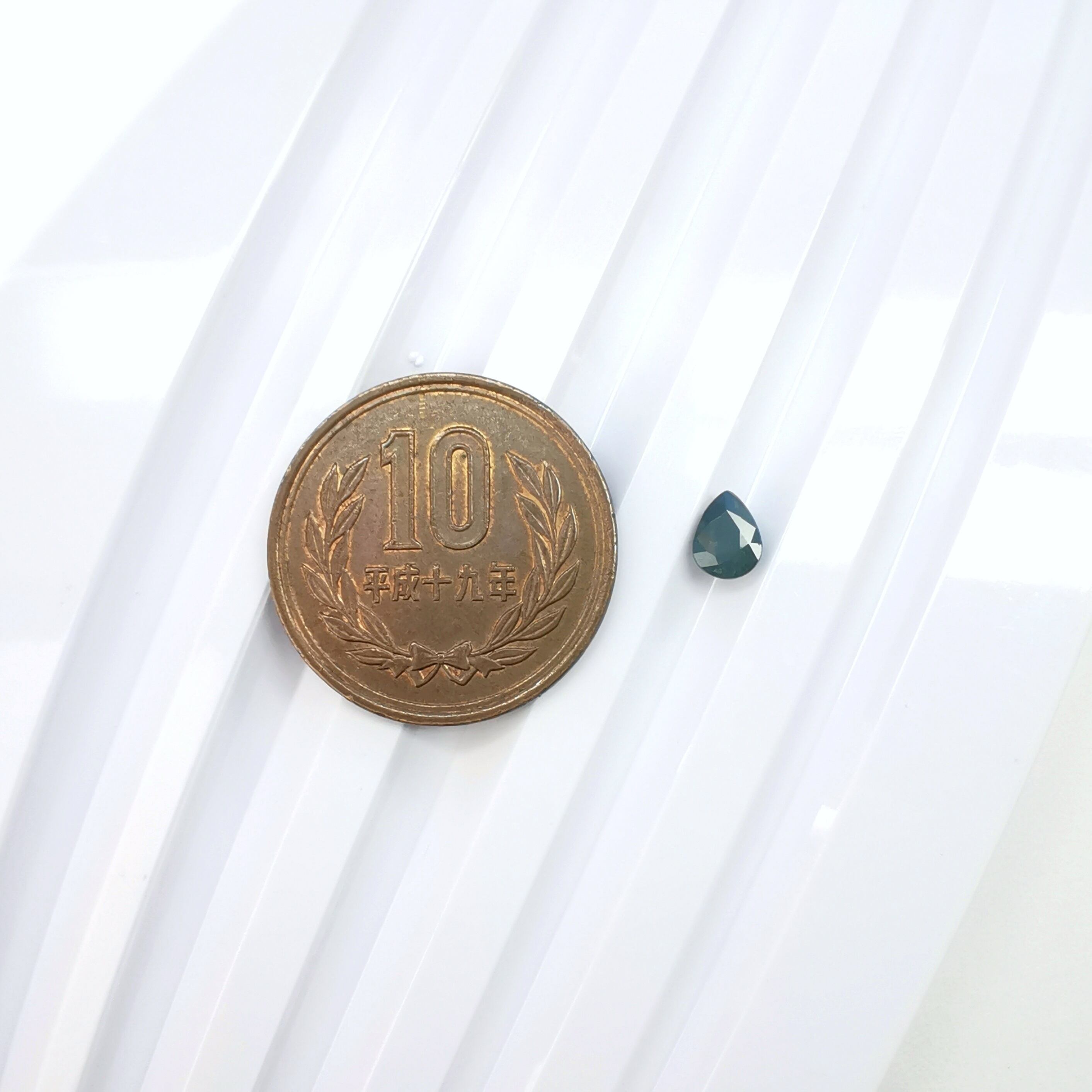 クラリティは、雫の丸みを帯びた尻部のガードルに近い表のファセットにチップ、雫の先端あたりの表のファセットに極々わずかな小傷みられます。また、裏のファセットの半分ほどにシラーを伴う成長線みられます。