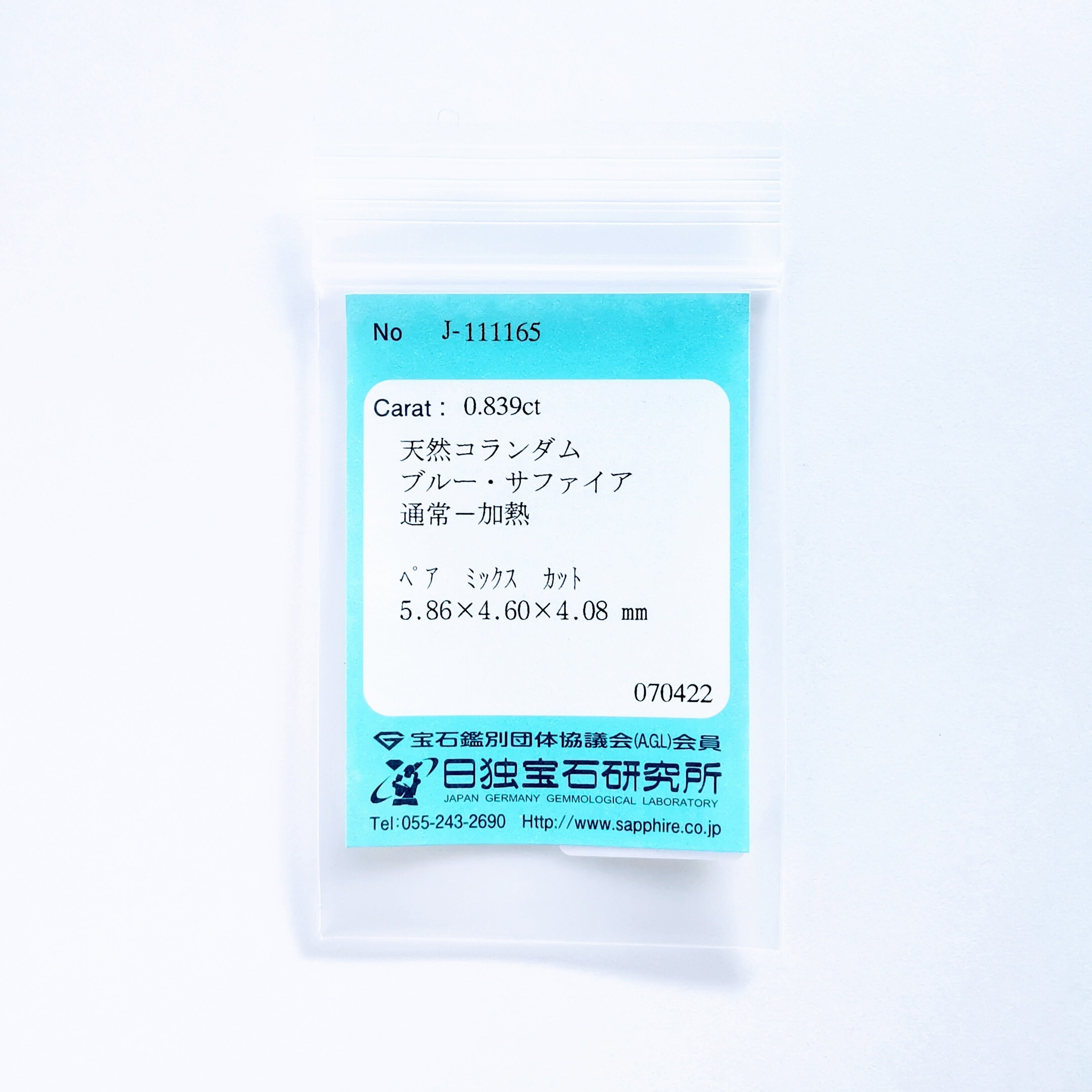 天然ブルーサファイア(日独ソ付) 0.83ct / 22jan18b
