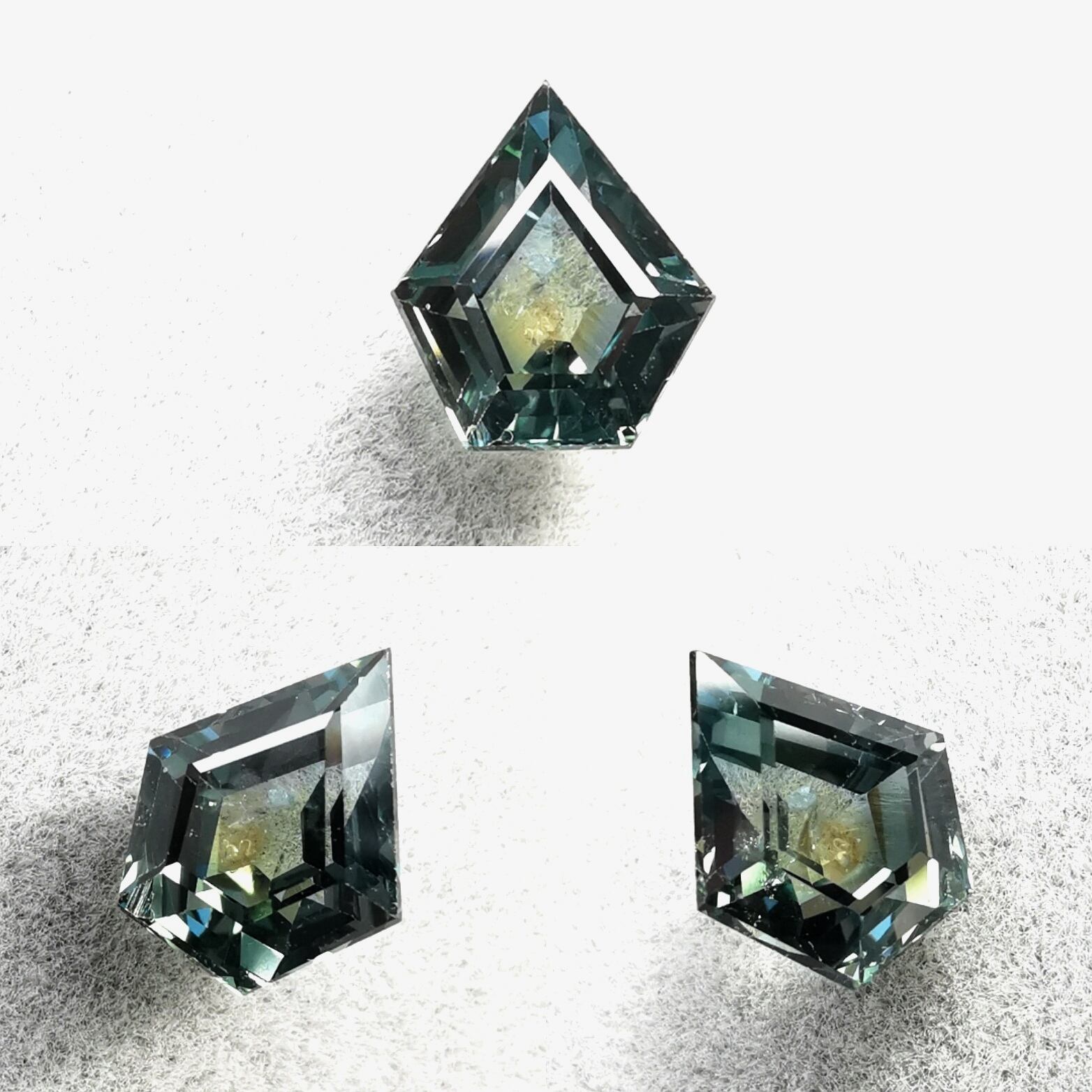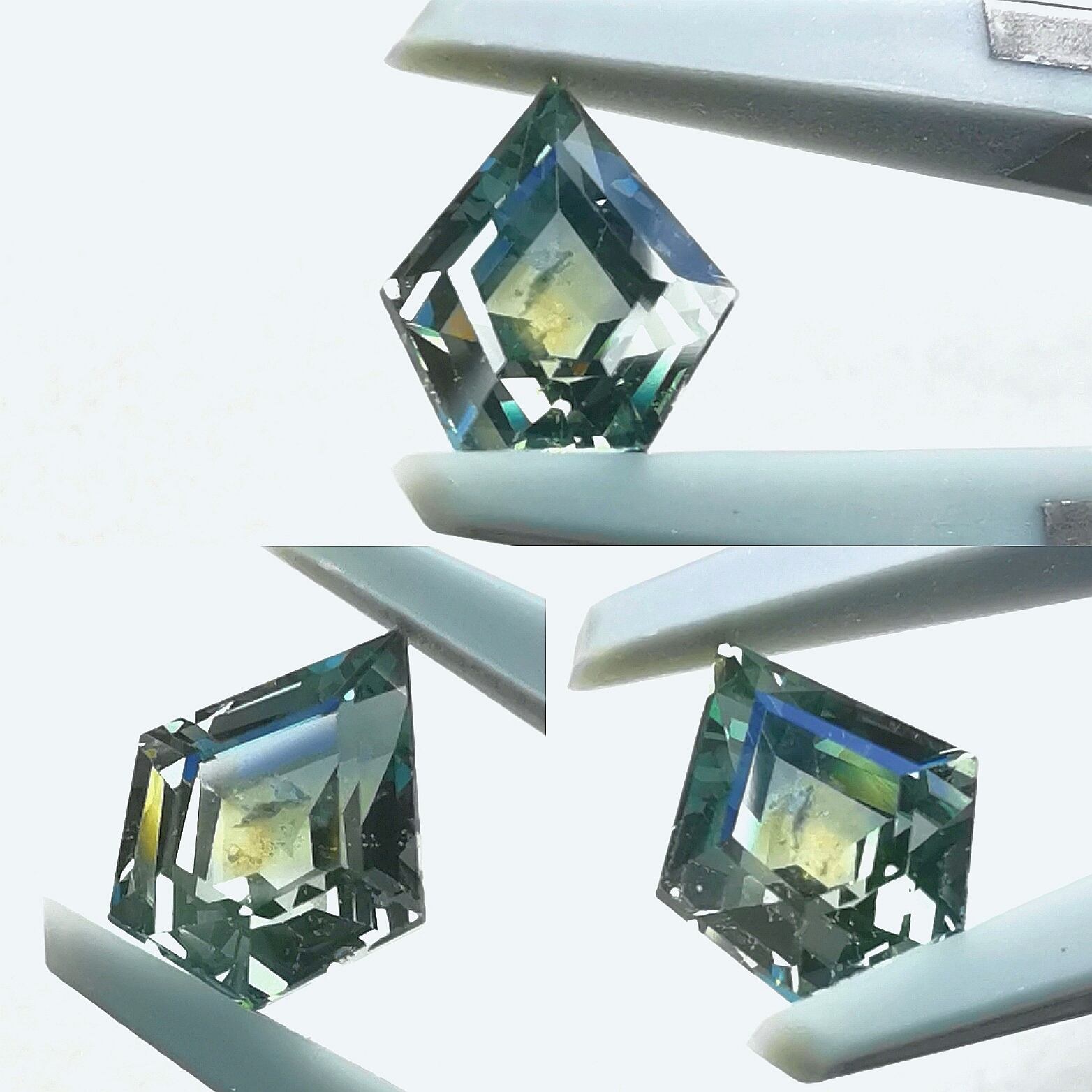 レイクブルーイッシュグリーンとライトイエローのツートーンカラーサファイア。