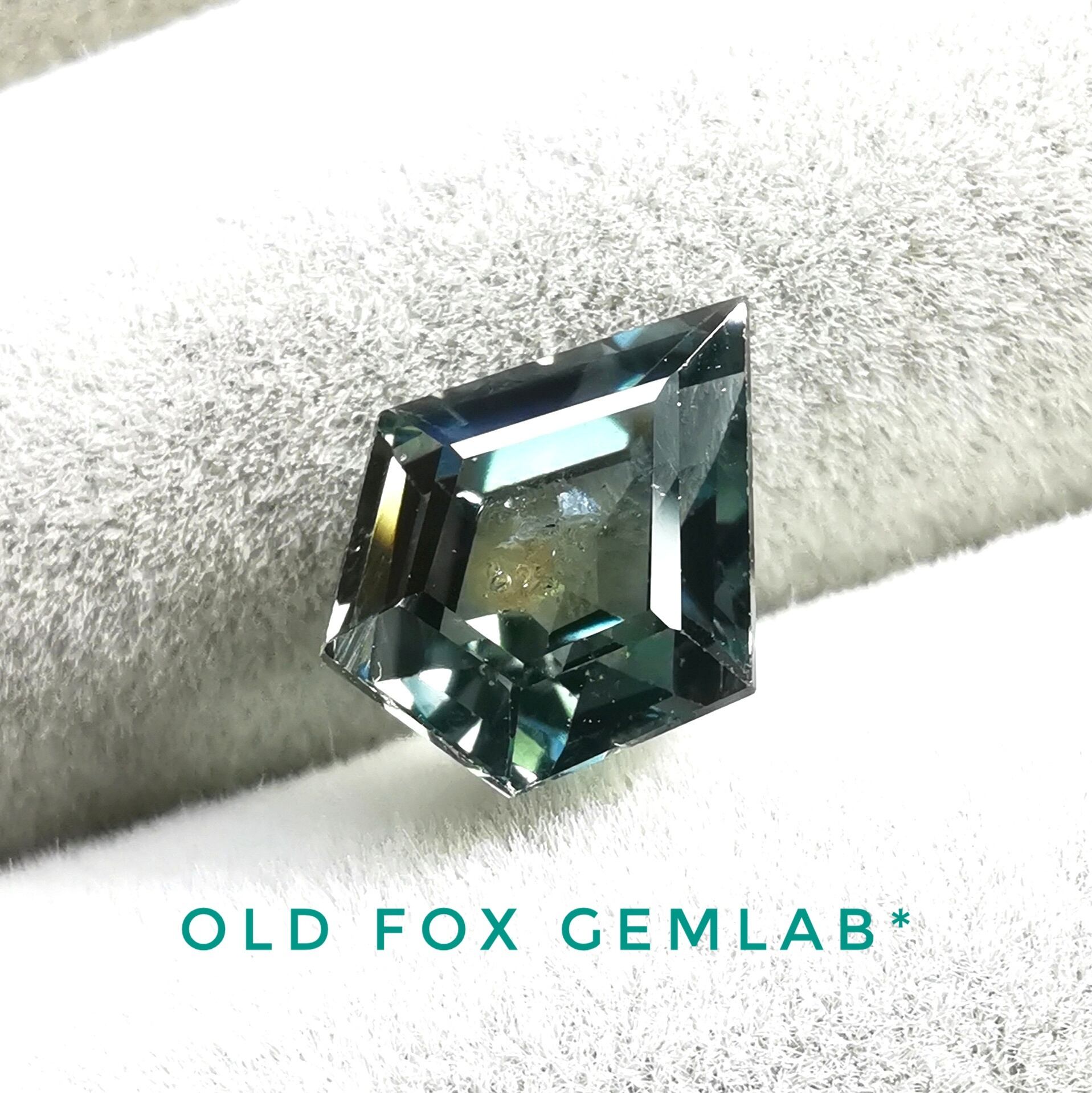 矢じりや、ランスを連想するシャープで大胆なカットが特徴で、テリよく輝くティール系のお色味と相まって。