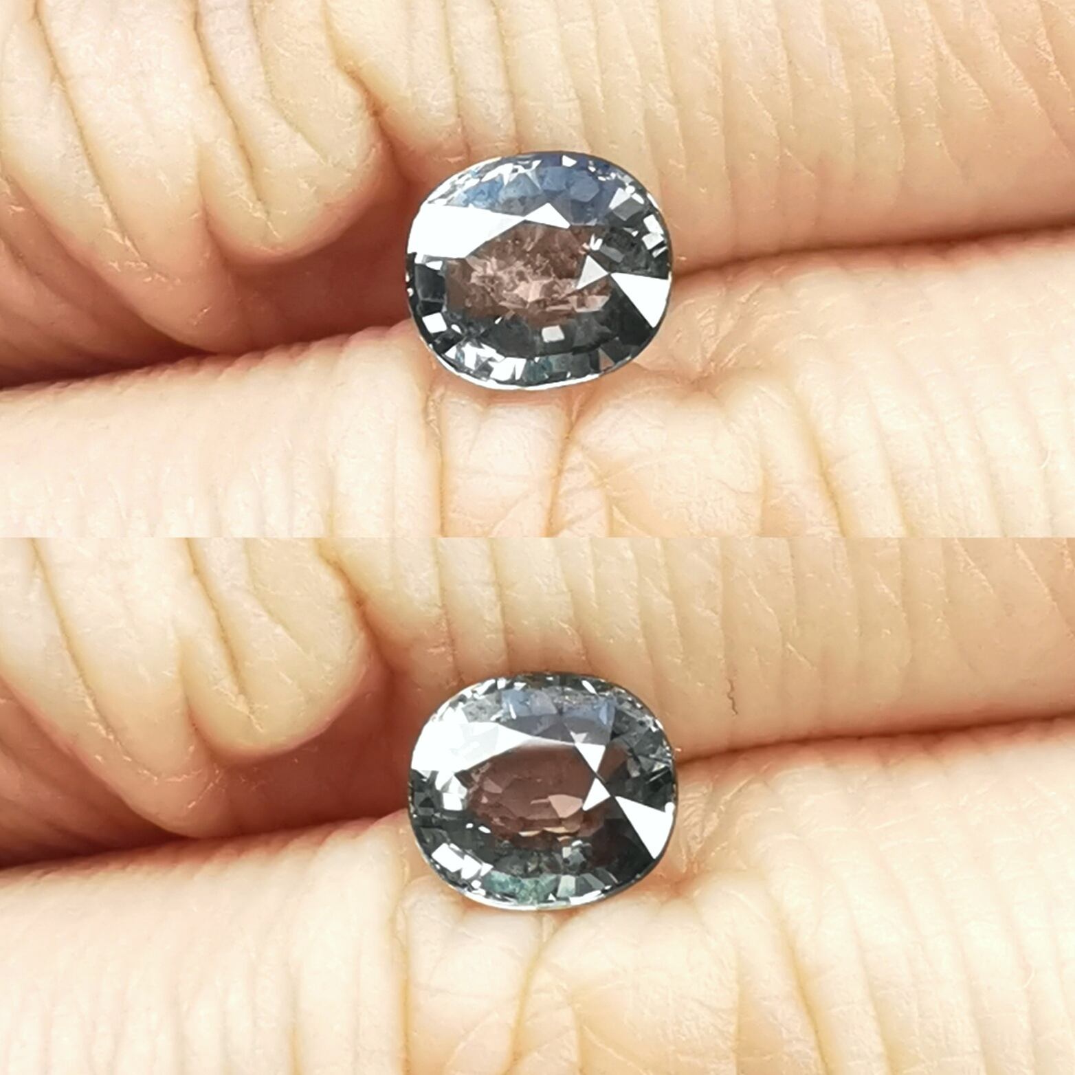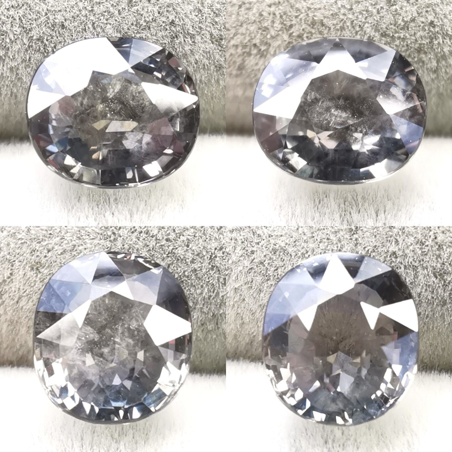 クラリティは、地味で不思議な色味をのぞけば、モヤ状のシーンインクルージョンが目視できるポイントがある程度で、他に目立つ内包物や欠損のみられない質良いルースとなります。