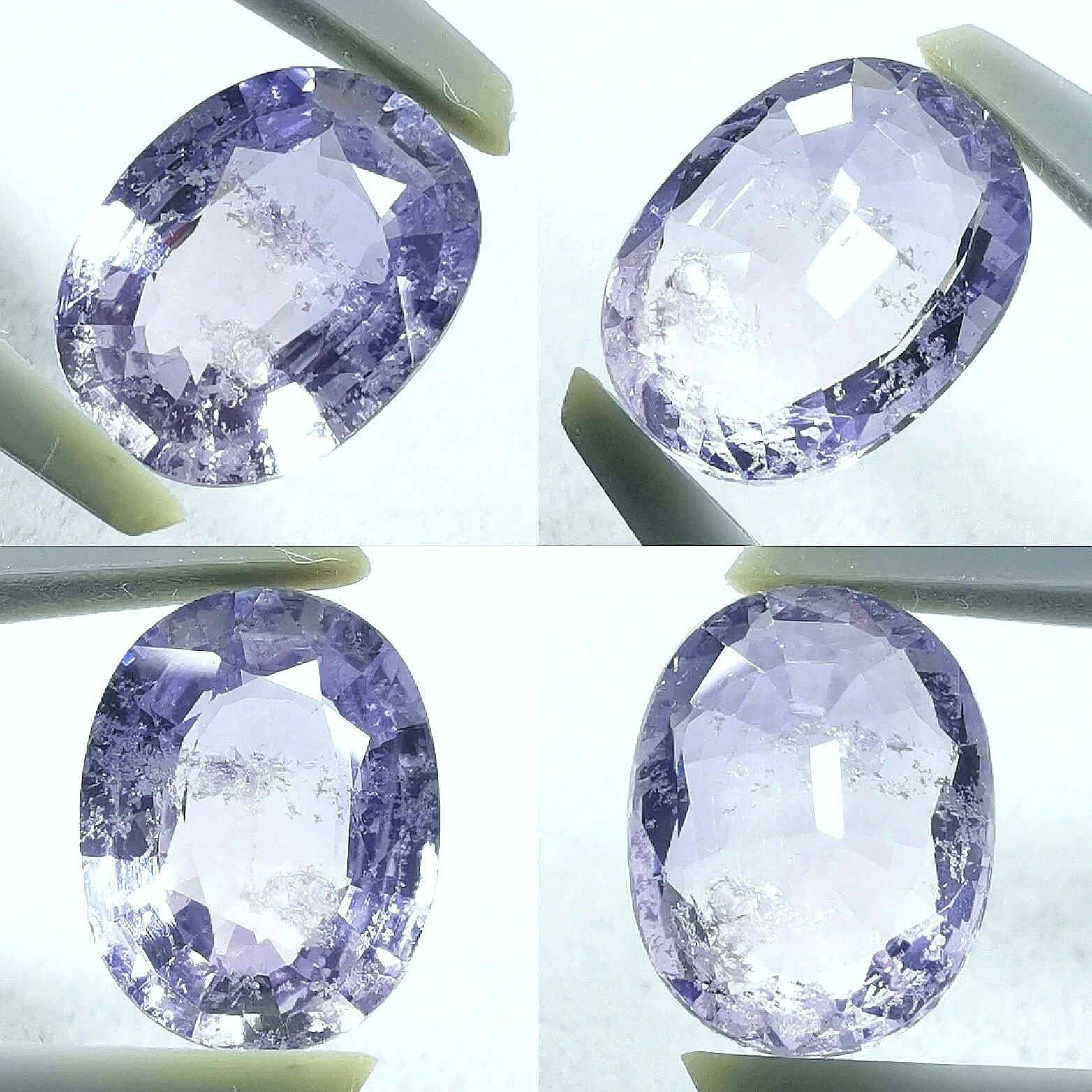無色透明の湖面に青紫の絵の具をほんの僅かに垂らし染まりはじめた過程の様なうすい紺青、ベリーペールなブルーとカラーレスのバイカラーサファイア。
