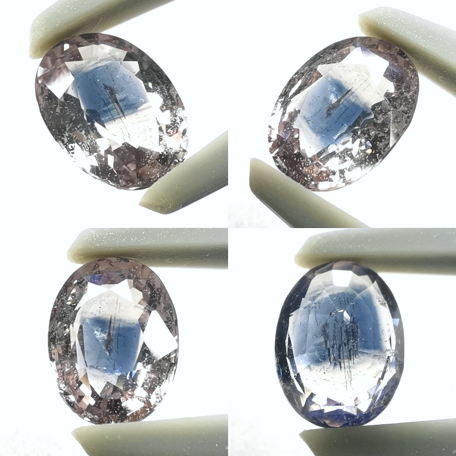 クラリティは、引っ掻いた跡の様な内傷にブルーのカラーバンド、散見する細かなダスティなインクルージョンが目視できます。他、甚大に至らない程度の細かな小傷などみられます。
