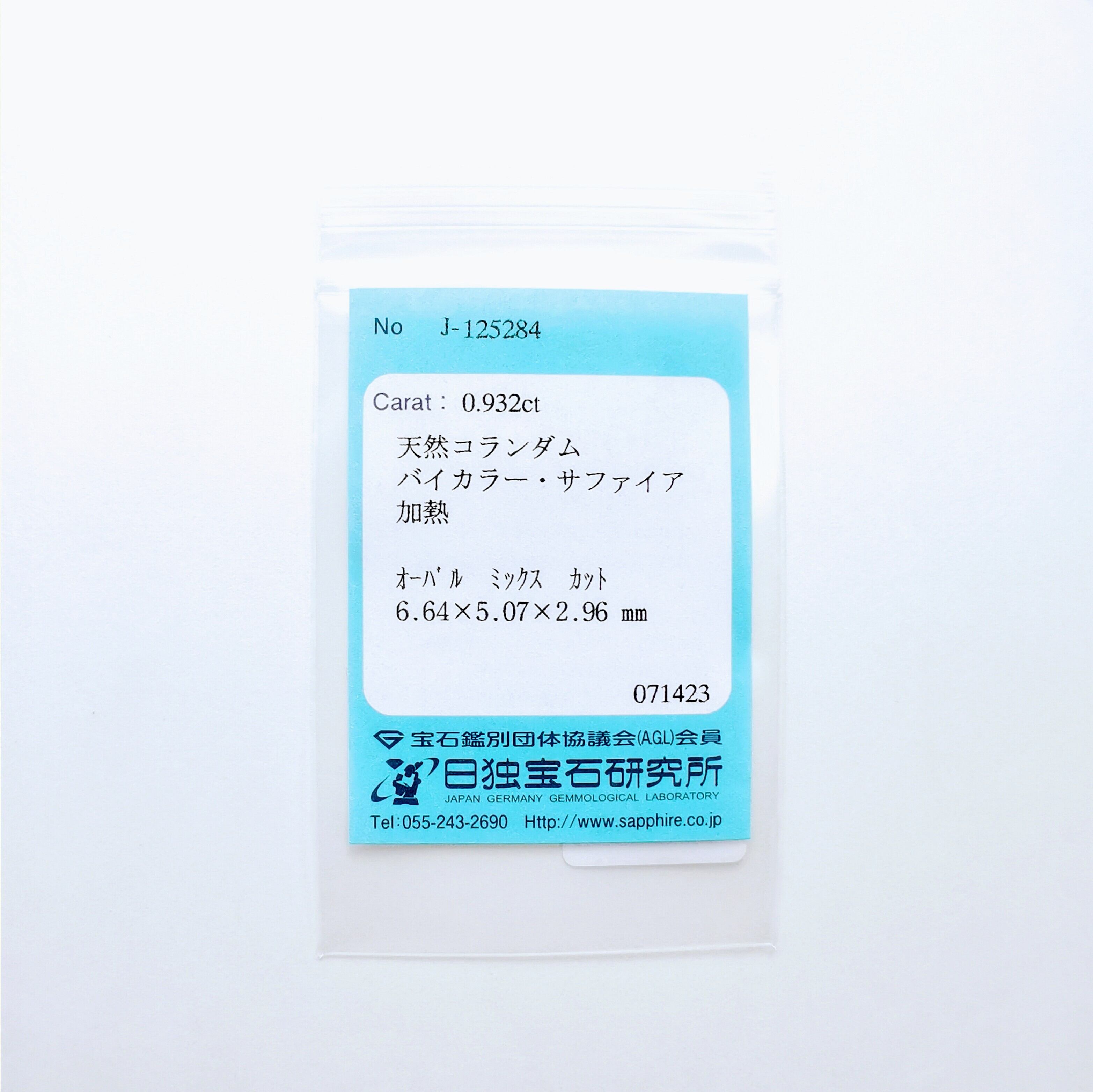 天然バイカラーサファイア(日独ソ付) 0.93ct / 23may03c