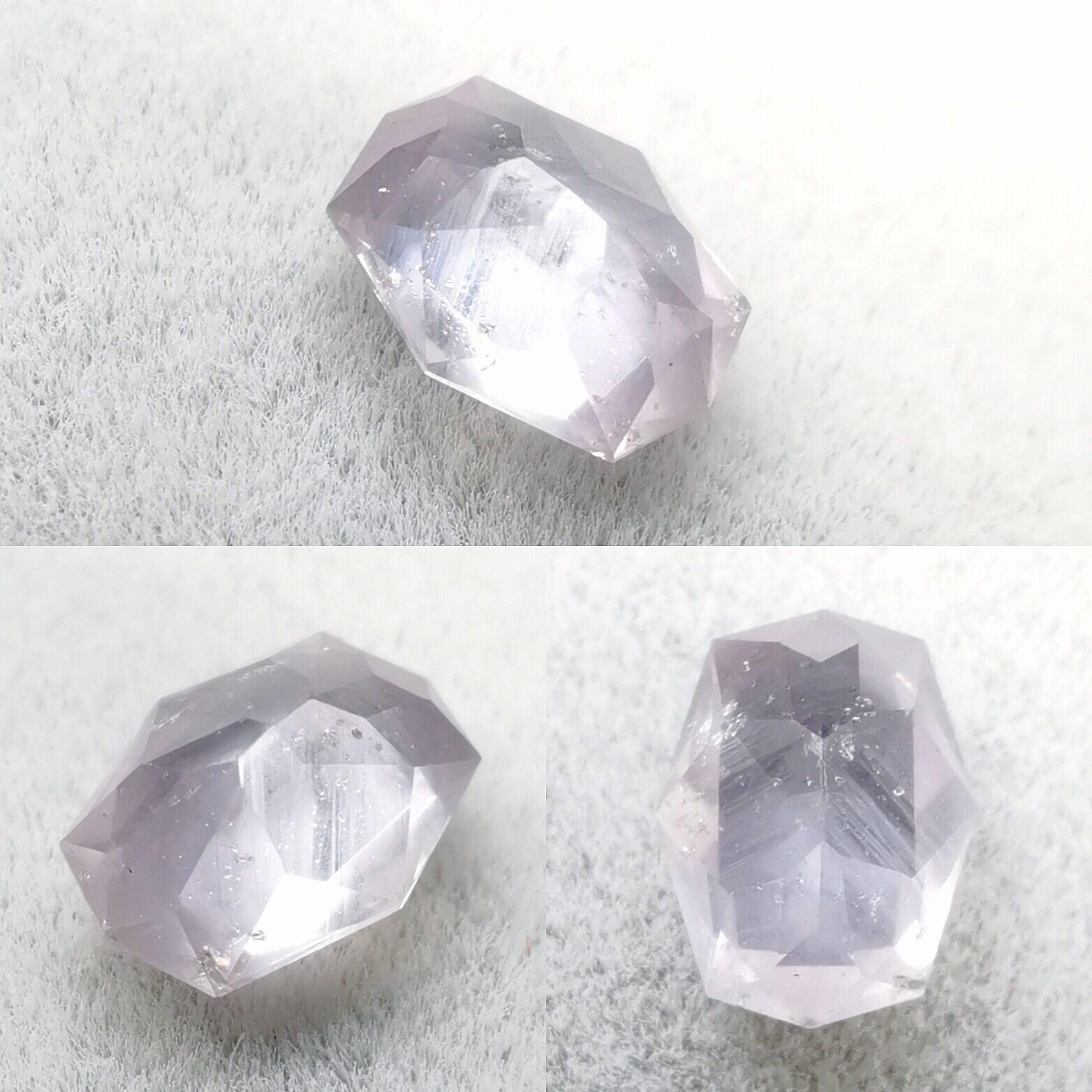 クラリティは、細かなをダスティなインクルージョンの散見、白いカラーバンドや、波紋様の半アステリズムが目視できます。目立つ欠損などはありませんが、ややカット甘くシンメトリーでない部分が少し見られます。