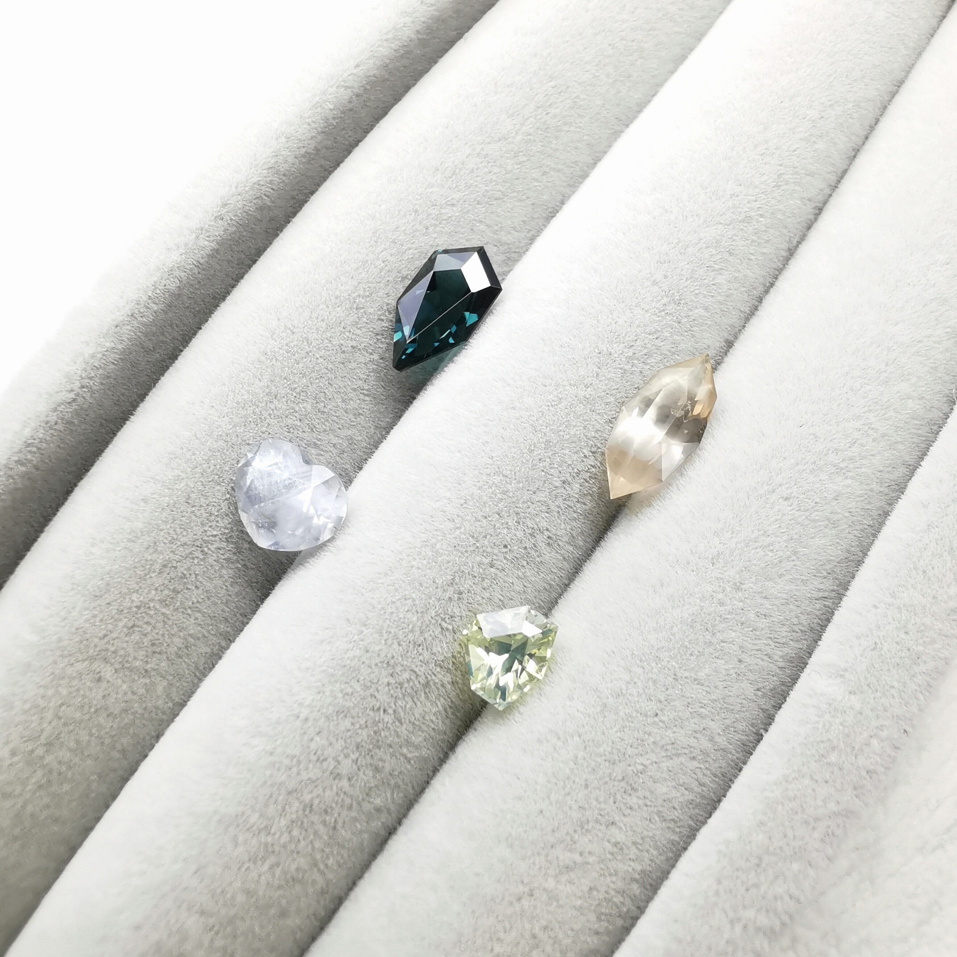 月明かりに包まれた様なペールライトホワイトイエロー、シルキームーンライトイエローといった可愛らしいサファイア。