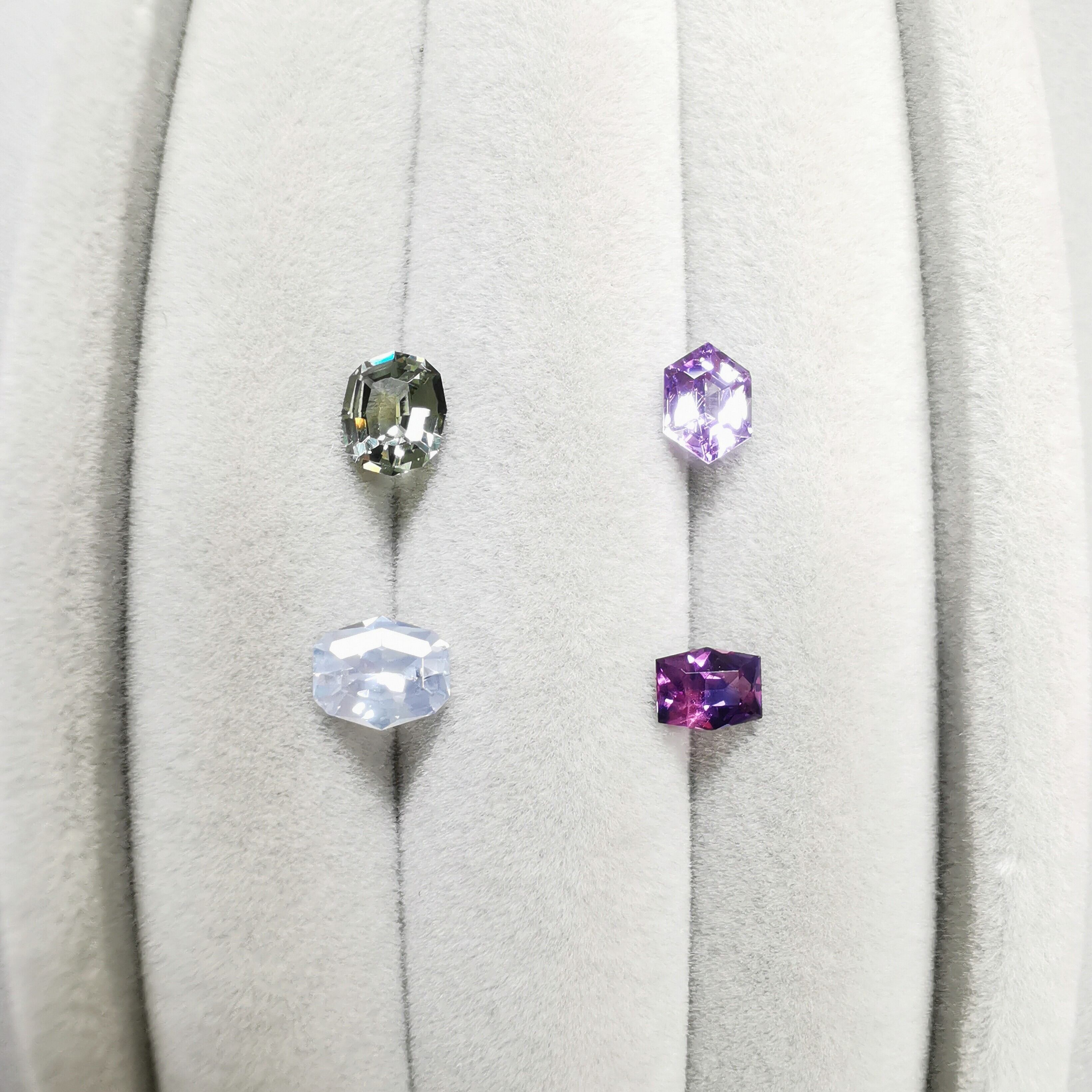 ファンシーホワイト、ニアカラーレスといったお色味の加熱サファイア。