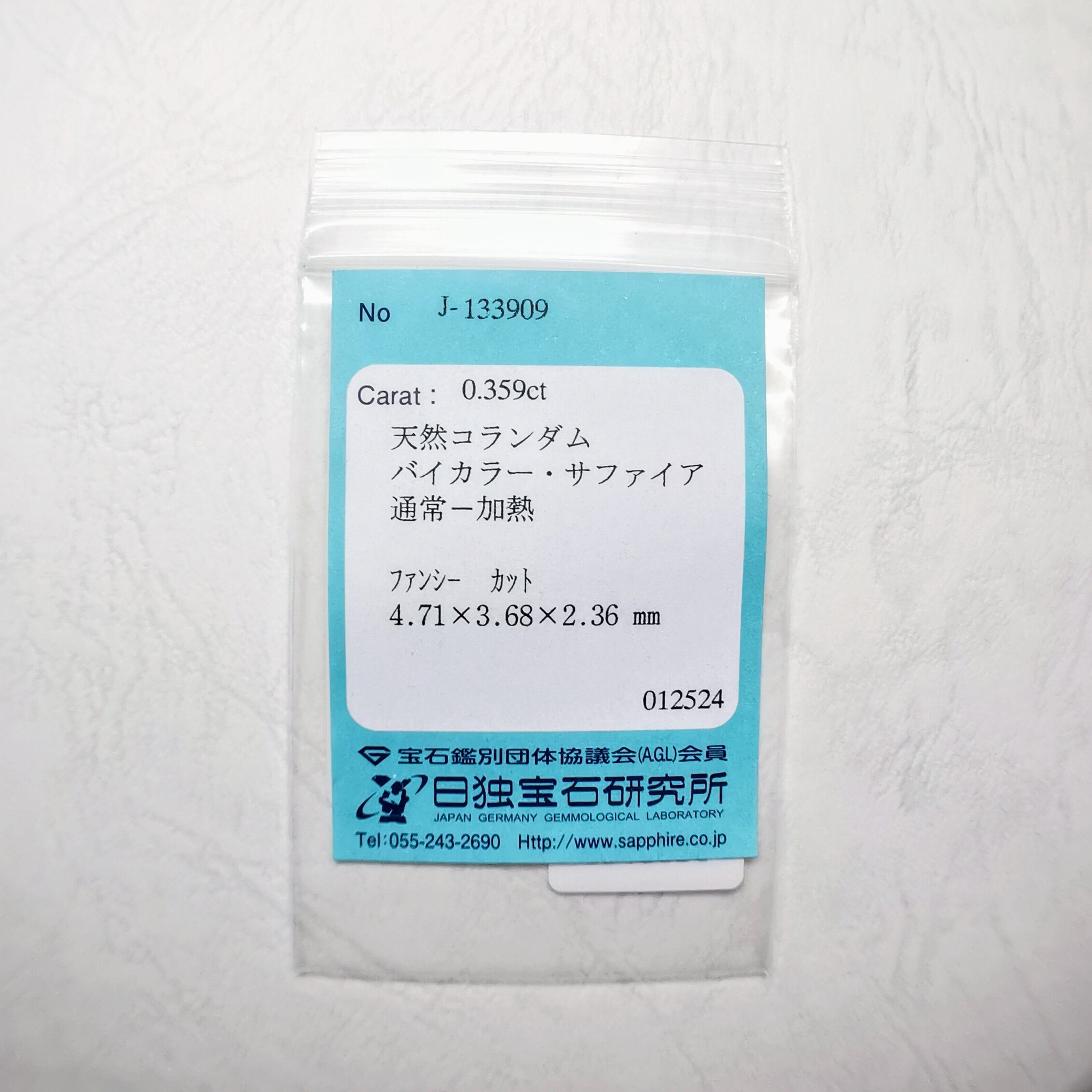 【DM◎】天然バイカラーサファイア(日独ソ付) 0.36ct / 23apr16a-n